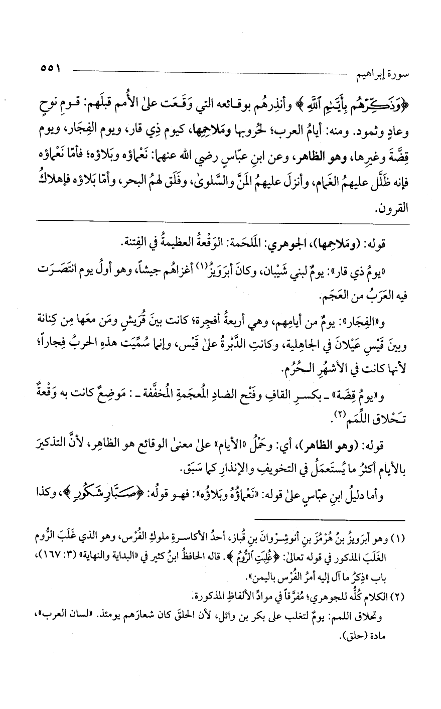 "يوم ذي قار": يوم لبني شيبان، وكان أبرويز أغزاهم جيشاً، وهو أول يوم انتصرت فيه العرب من العجم.