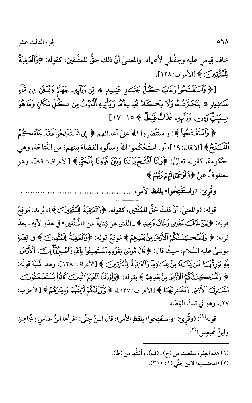 قوله: (وقرئ: "واستفتحوا" بلفظ الأمر)، قال ابن جني: "قرأها ابن عباس ومجاهد وابن محيصن".