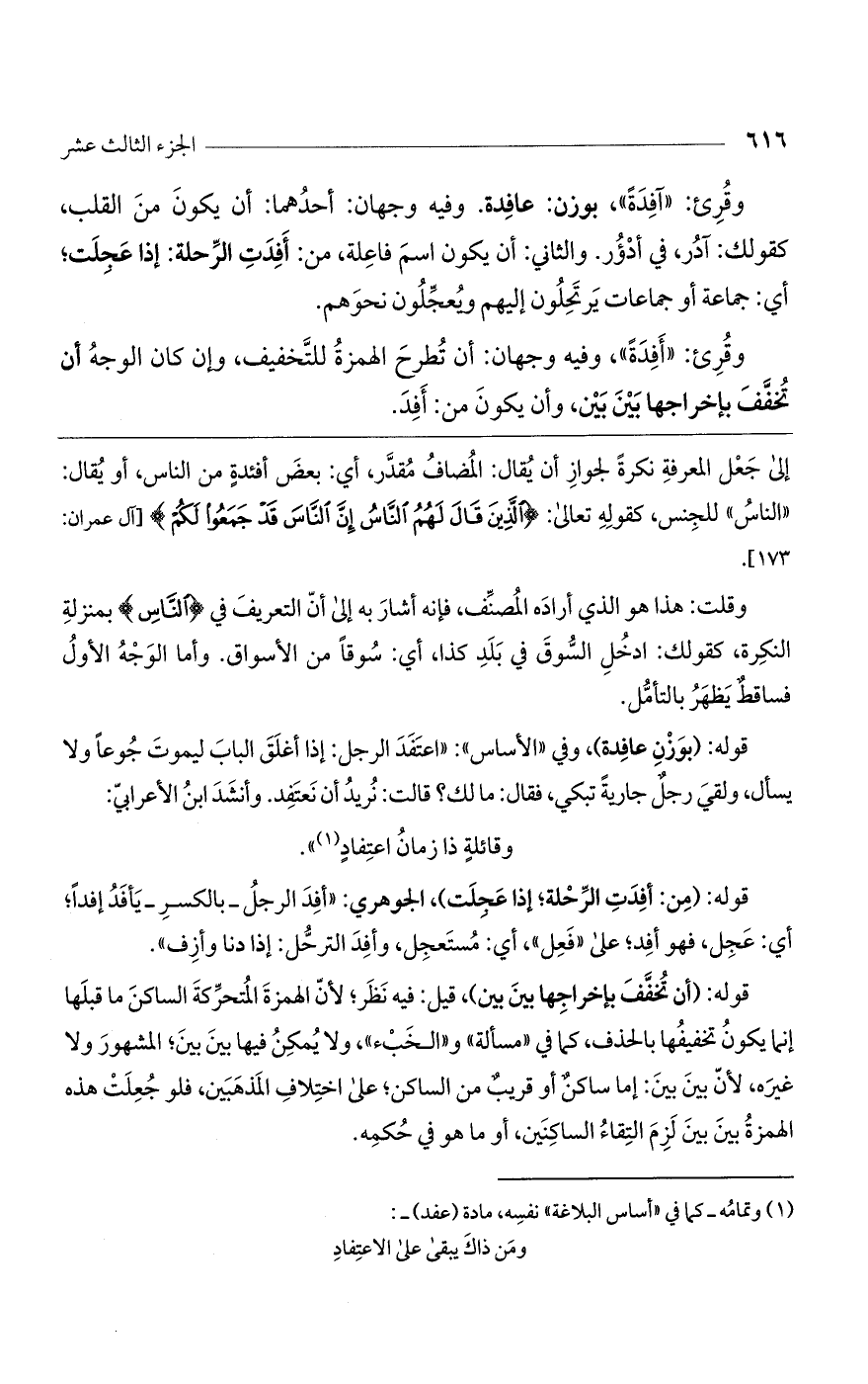 إلى جعل المعرفة نكرة لجواز أن يقال: المضاف مقدر، أي: بعض أفئدة من الناس، أو يقال: "الناس" للجنس، كقوله تعالى: (الَّذِينَ قَالَ لَهُمْ النَّاسُ إِنَّ النَّاسَ قَدْ جَمَعُوا لَكُمْ) [آل عمران: 173].