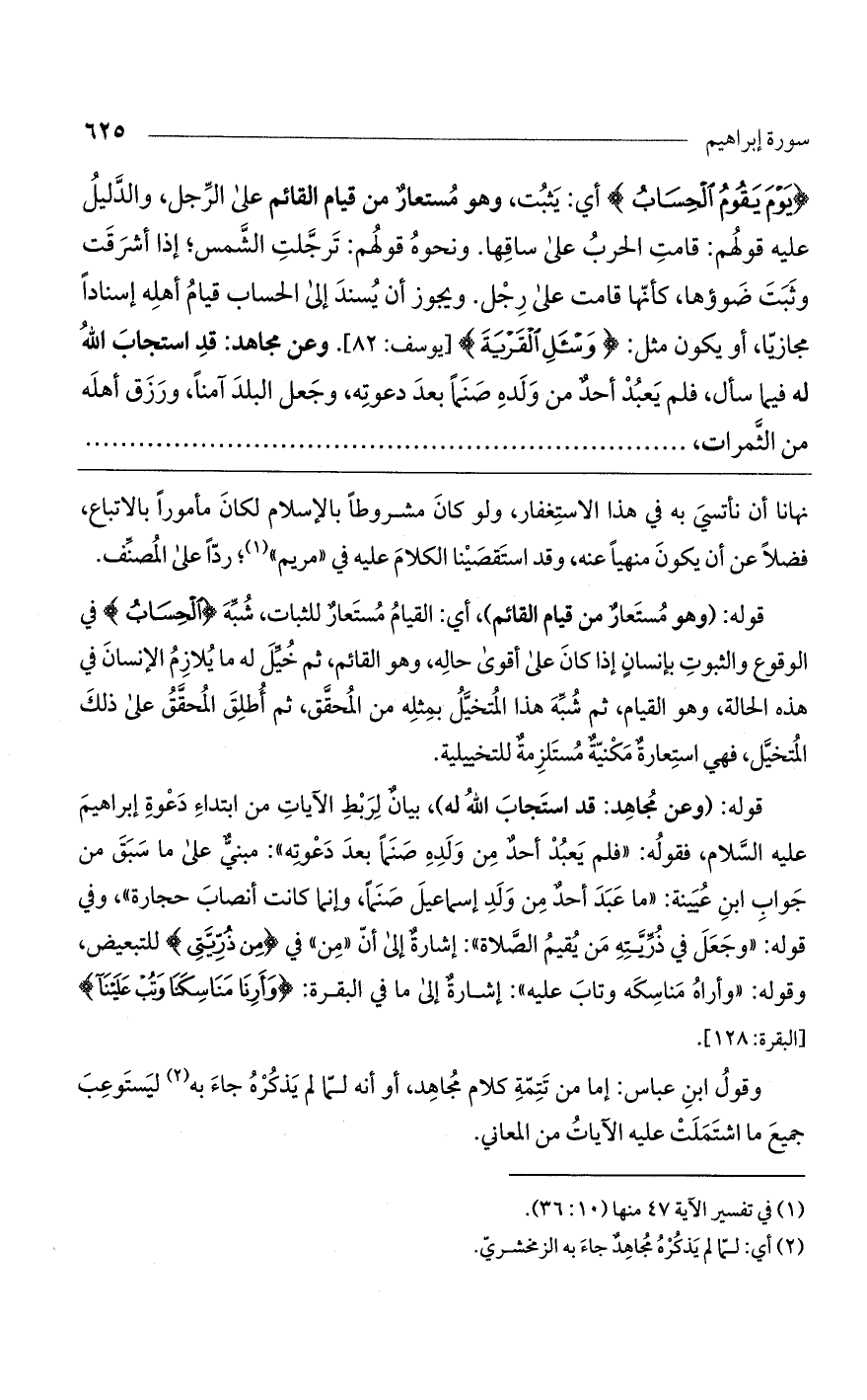(يَوْمَ يَقُومُ الْحِسابُ) أي: يثبت، وهو مستعارٌ من قيام القائم على الرجل، والدليل عليه قولهم: قامت الحرب على ساقها. ونحوه قولهم: ترجلت الشمس: إذا أشرقت وثبت ضوؤها، كأنها قامت على رجل. ويجوز أن يسند إلى الحساب قيام أهله إسناداً مجازياً، أو يكون مثل (وَسْئَلِ الْقَرْيَةَ) [يوسف: 82]. وعن مجاهد: قد استجاب الله له فيما سأل، فلم يعبد أحد من ولده صنما بعد دعوته، وجعل البلد آمنا، ورزق أهله من الثمرات، .........
