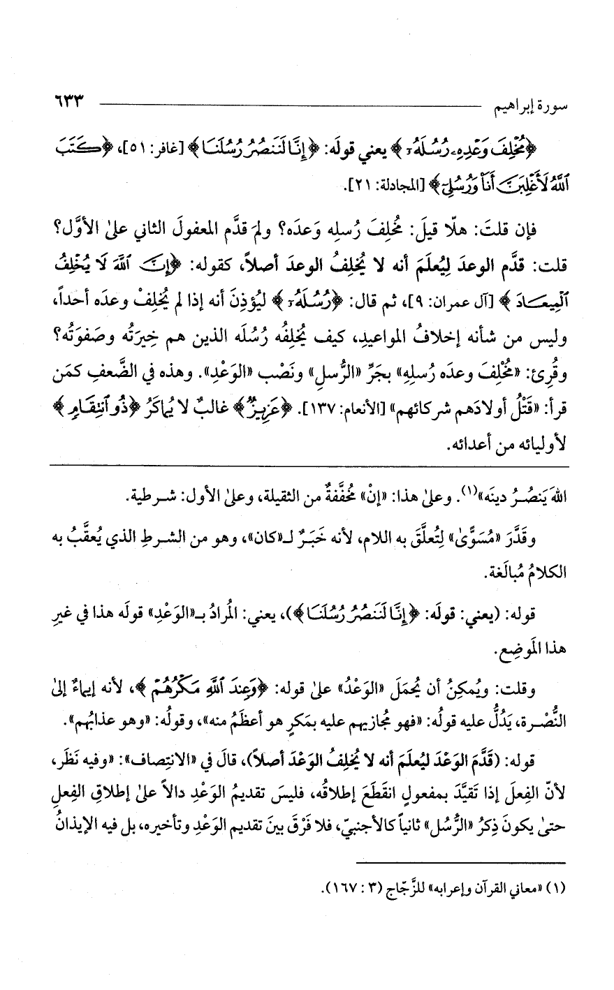 (مُخْلِفَ وَعْدِهِ رُسُلَهُ) يعني قوله: (إِنَّا لَنَنْصُرُ رُسُلَنا) [غافر: 51]، (كَتَبَ اللَّهُ لَأَغْلِبَنَّ أَنَا وَرُسُلِي) [المجادلة: 21].