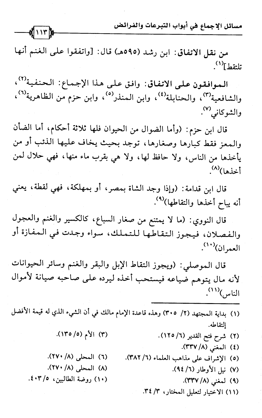 • من نقل الاتفاق: ابن رشد (595 هـ) قال: [واتفقوا على الغنم أنها تلتقط] (¬1).