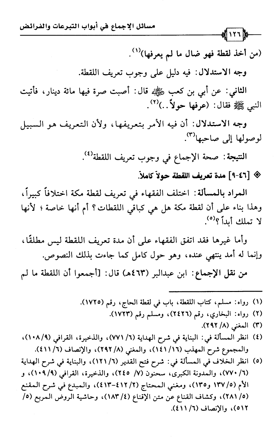 • من نقل الإجماع: ابن عبد البر (463 هـ) قال: [أجمعوا أن اللقطة ما لم