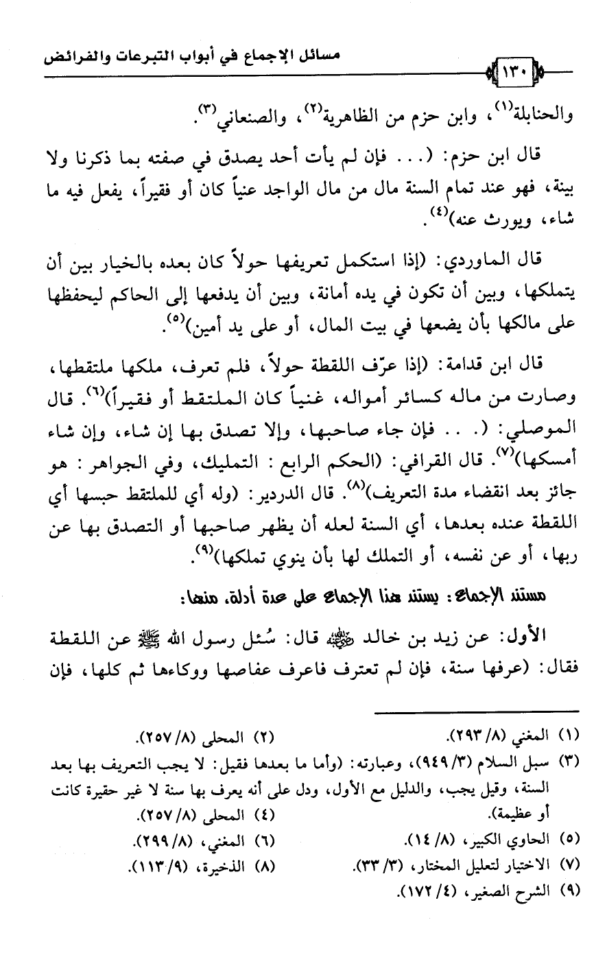 الأول: عن زيد بن خالد -رضي اللَّه عنه- قال: سُئل رسول اللَّه -صلى اللَّه عليه وسلم- عن اللقطة فقال: (عرفها سنة، فإن لم تعترف فاعرف عفاصها ووكاءها ثم كلها، فإن