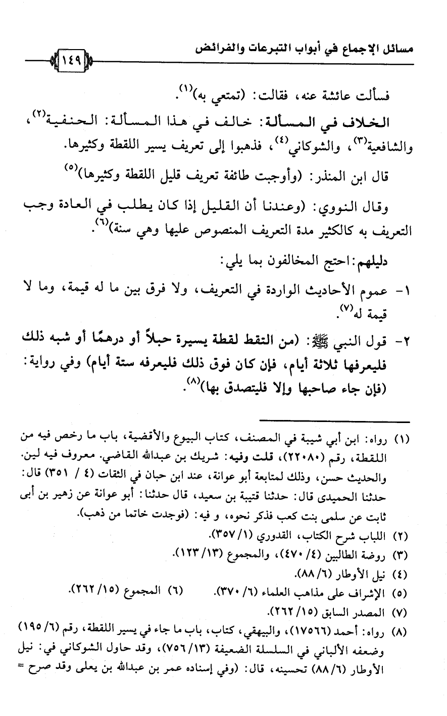 • الخلاف في المسألة: خالف في هذا المسألة: الحنفية (¬2)، والشافعية (¬3)، والشوكاني (¬4)، فذهبوا إلى تعريف يسير اللقطة وكثيرها.