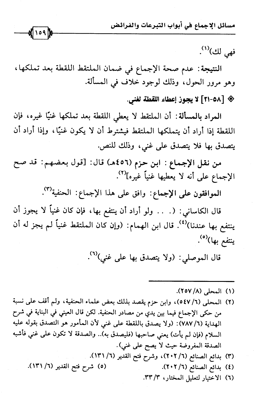 (¬2) المحلى (6/ 547)، وابن حزم يقصد بذلك بعض علماء الحنفية، ولم أقف على نسبة من حكى الإجماع فيما بين يدي من مصادر الحنفية. لكن قال العيني في البناية في شرح الهداية (6/ 787): (ولا يصدق باللقطة على غني لأن المأمور هو التصدق بقوله عليه السلام (فإن لم يأت) يعني صاحبها (فليصدق به). . والصدقة لا تكون على غني فأشبه الصدقة المفروضة حيث لا يصح على غني).