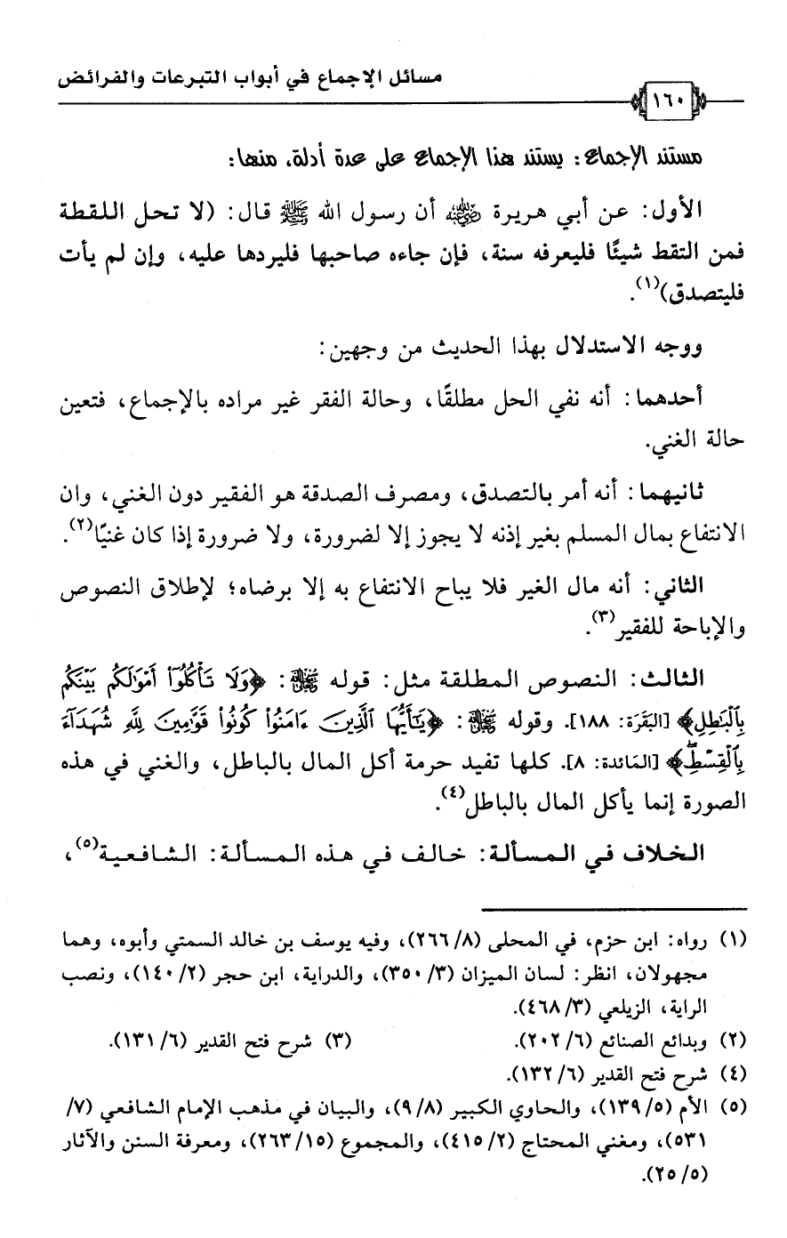 الثالث: النصوص المطلقة مثل: قوله سبحانه وتعالى: {وَلَا تَأْكُلُوا أَمْوَالَكُمْ بَيْنَكُمْ بِالْبَاطِلِ} [البقرة: 188]. وقوله سبحانه وتعالى: {يَاأَيُّهَا الَّذِينَ آمَنُوا كُونُوا قَوَّامِينَ لِلَّهِ شُهَدَاءَ بِالْقِسْطِ} [المائدة: 8]. كلها تفيد حرمة أكل المال بالباطل، والغني في هذه الصورة إنما يأكل المال بالباطل (¬4).