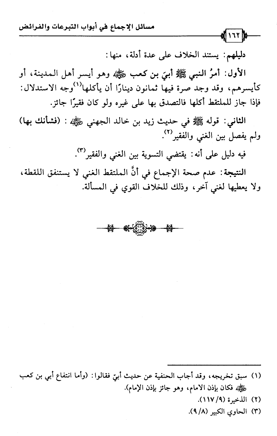فيه دليل على أنه: يقتضي التسوية بين الغني والفقير (¬3).Rعدم صحة الإجماع في أن الملتقط الغني لا يستنفق اللقطة، ولا يعطيها لغني آخر، وذلك للخلاف القوي في المسألة.