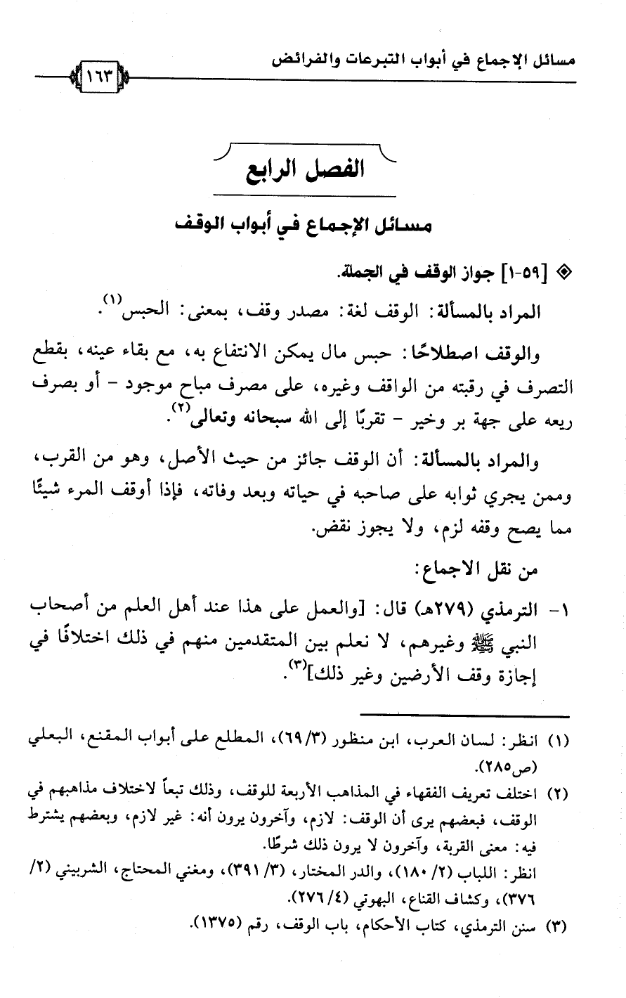 الفصل الرابع: مسائل الإجماع في أبواب الوقف