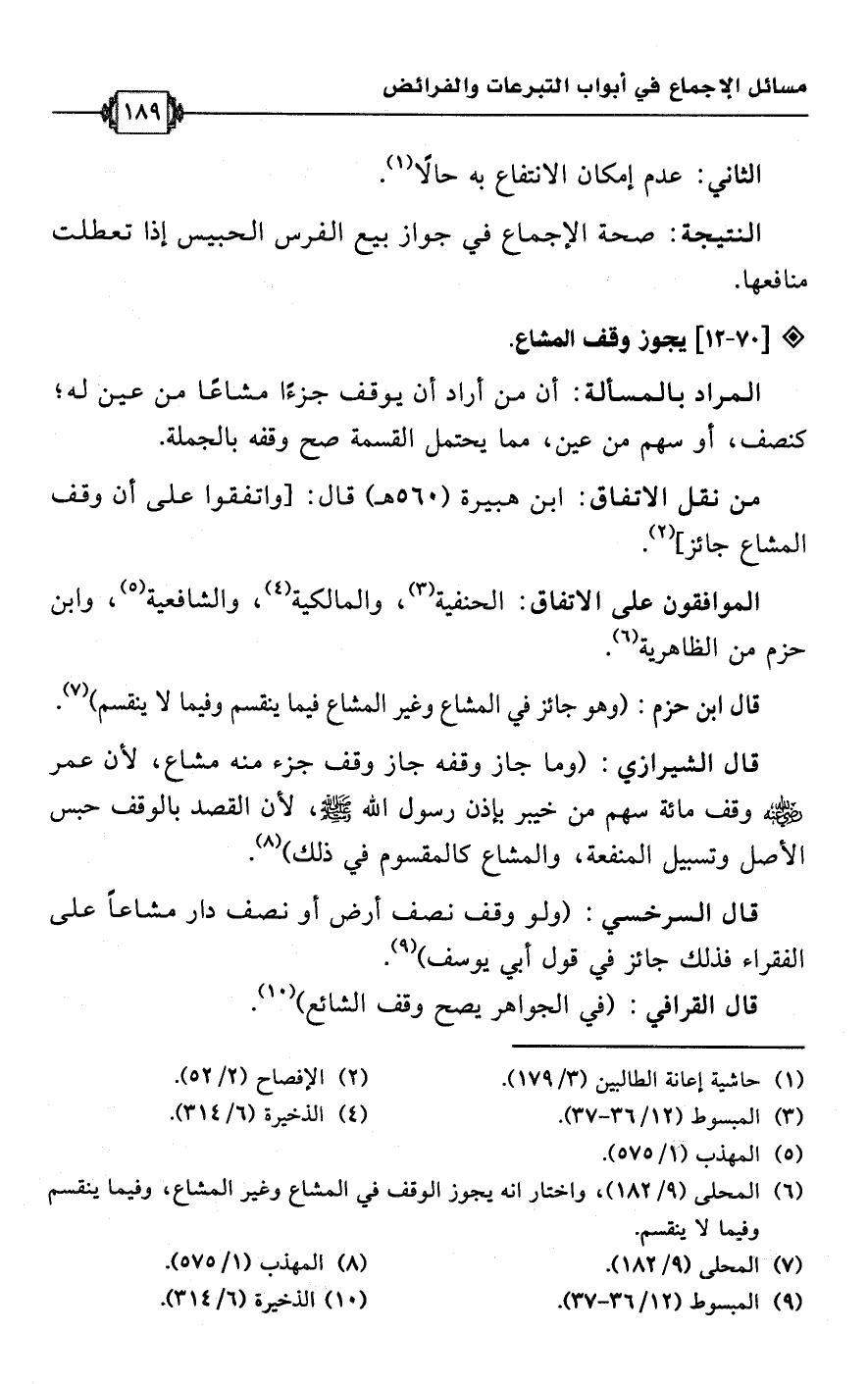 • من نقل الاتفاق: ابن هبيرة (560 هـ) قال: [واتفقوا على أن وقف المشاع جائز] (¬2).