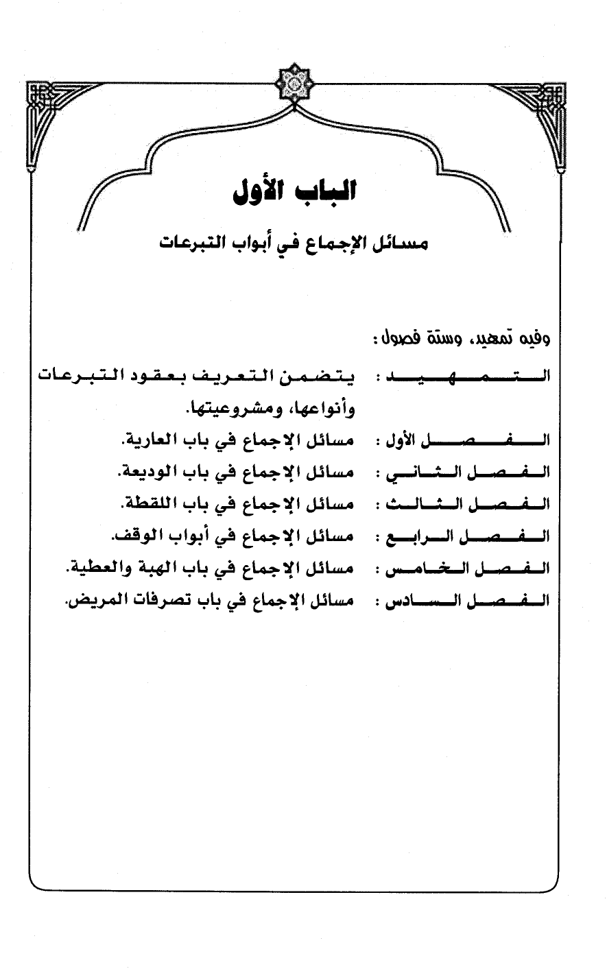الباب الأول مسائل الإجماع في أبواب التبرعات