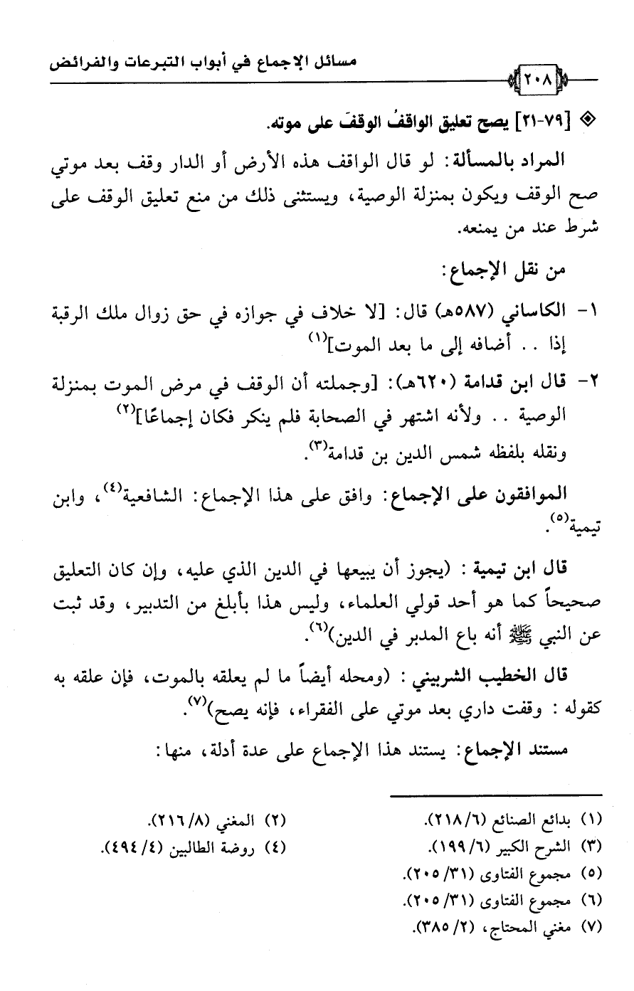1 - الكاساني (587 هـ) قال: [لا خلاف في جوازه في حق زوال ملك الرقبة إذا. . أضافه إلى ما بعد الموت] (¬1).