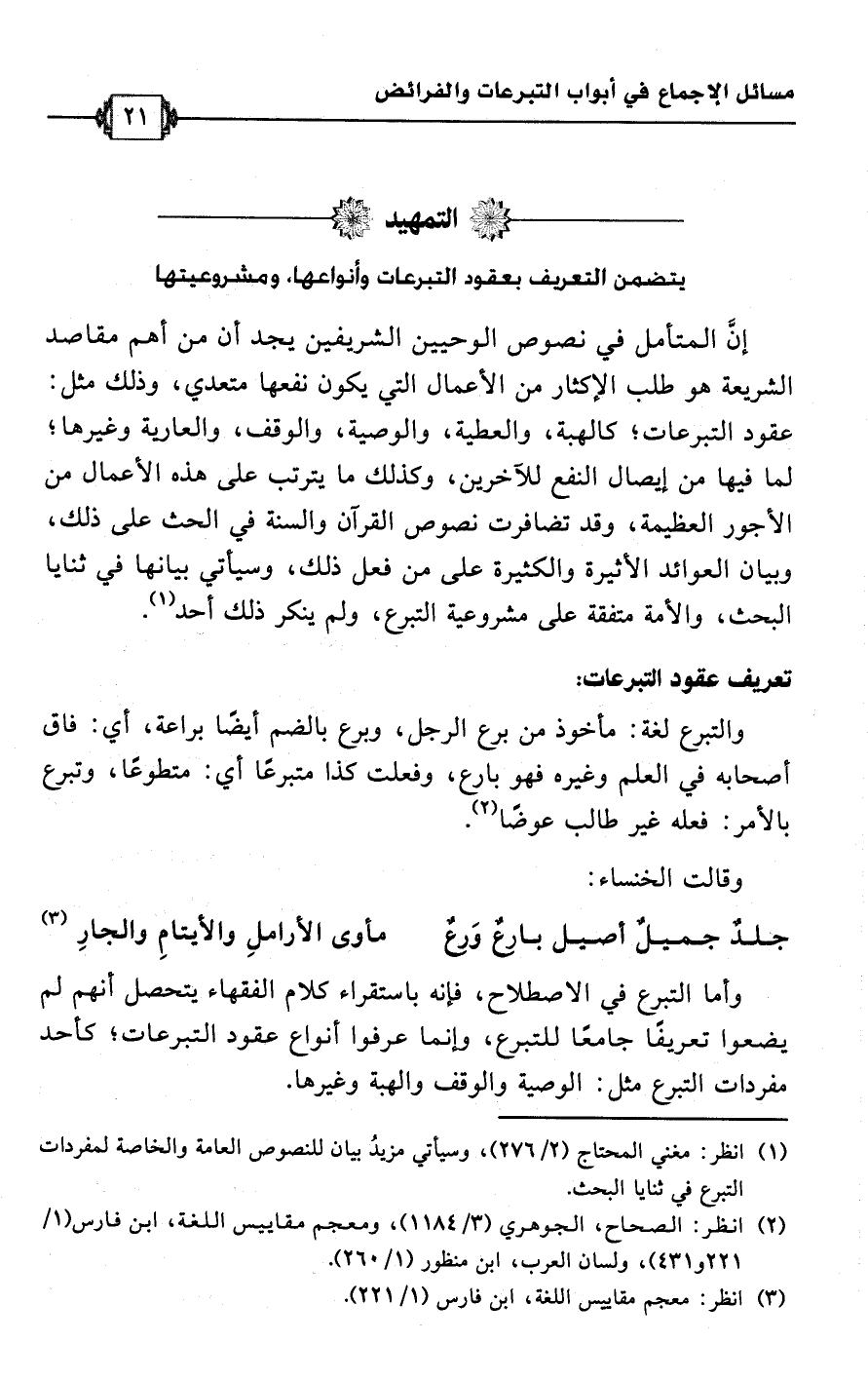 (¬1) انظر: مغني المحتاج (2/ 276)، وسيأتي مزيدُ بيان للنصوص العامة والخاصة لمفردات التبرع في ثنايا البحث.