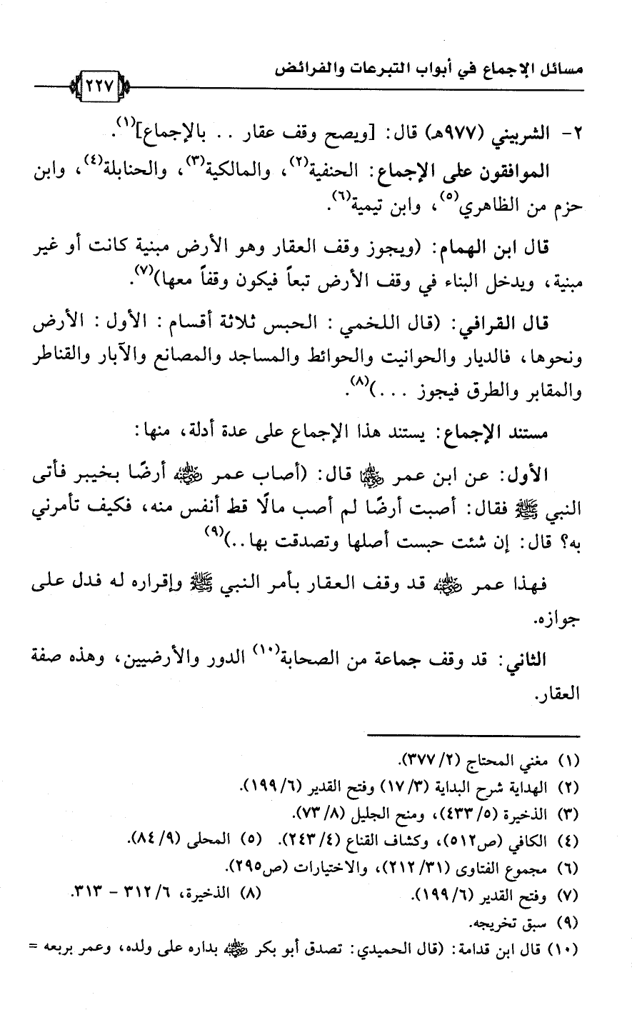 2 - الشربيني (977 هـ) قال: [ويصح وقف عقار. . بالإجماع] (¬1).
