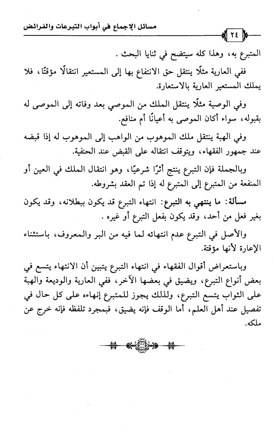 والأصل في التبرع عدم انتهائه لما فيه من البر والمعروف، باستثناء الإعارة لأنها مؤقتة.