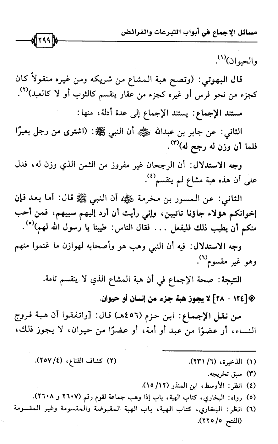 (¬6) انظر: البخاري، كتاب الهبة، باب الهبة المقبوضة والمقسومة وغير المقسومة (الفتح 5/ 225).