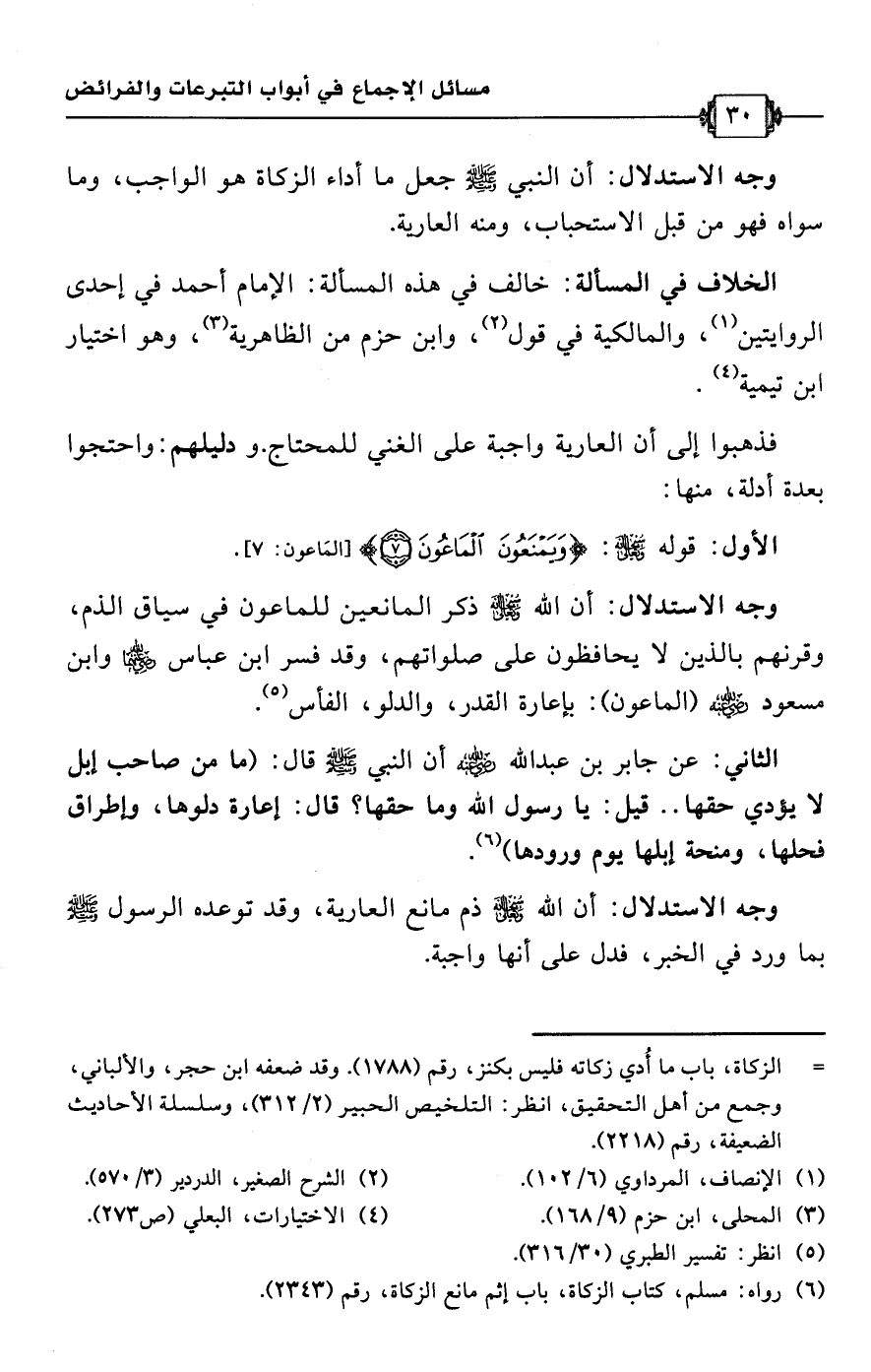 • وجه الاستدلال: أن اللَّه سبحانه وتعالى ذم مانع العارية، وقد توعده الرسول -صلى اللَّه عليه وسلم- بما ورد في الخبر، فدل على أنها واجبة.