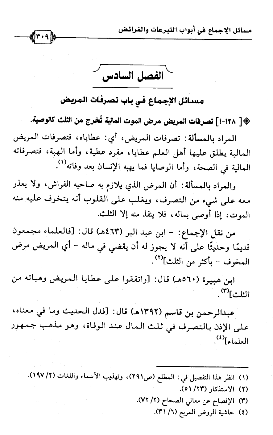 الفصل السادس: مسائل الإجماع في باب تصرفات المريض