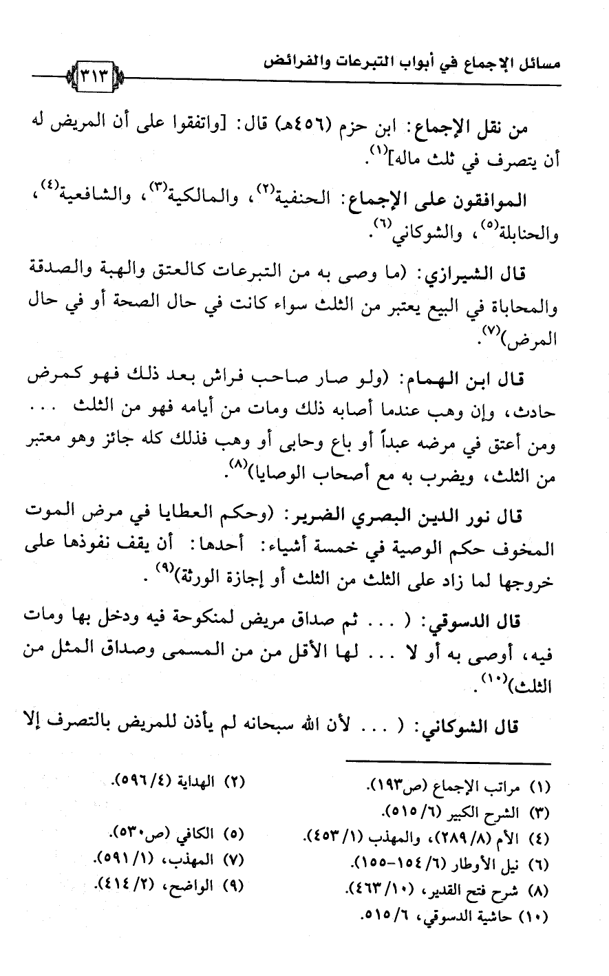 • من نقل الإجماع: ابن حزم (456 هـ) قال: [واتفقوا على أن المريض له أن يتصرف في ثلث ماله] (¬1).