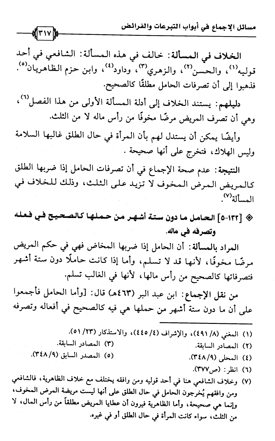 • من نقل الإجماع: ابن عبد البر (463 هـ) قال: [وأما الحامل فأجمعوا على أن ما دون ستة أشهر من حملها هي فيه كالصحيح في أفعاله وتصرفه