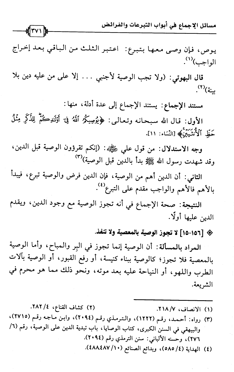 [156 - 15] لا تجوز الوصية بالمعصية ولا تنفذ