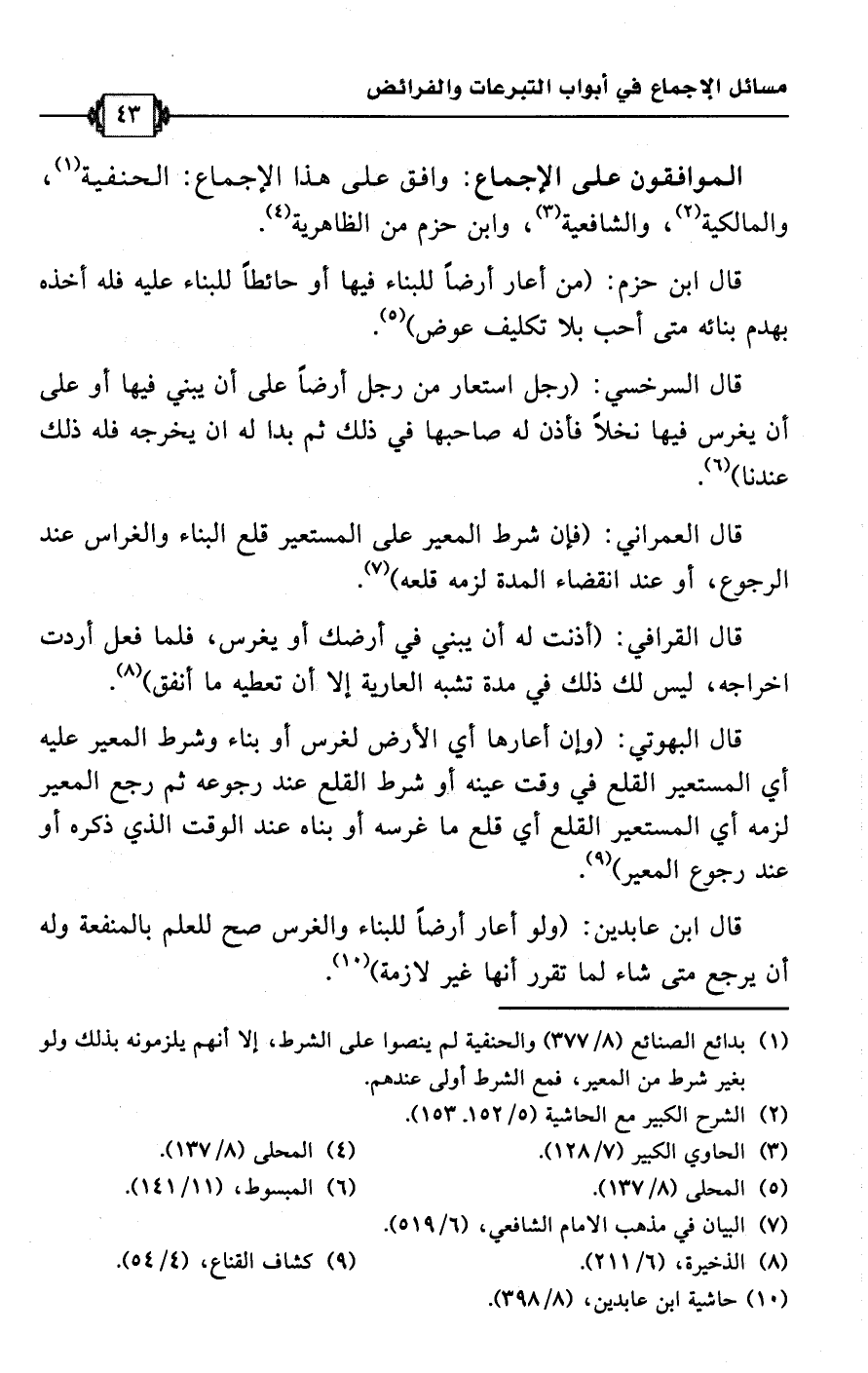 قال ابن حزم: (من أعار أرضًا للبناء فيها أو حائطًا للبناء عليه فله أخذه بهدم بنائه متى أحب بلا تكليف عوض) (¬5).