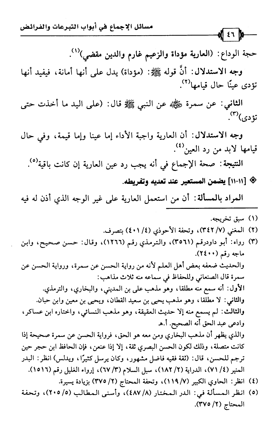 حجة الوداع: (العارية مؤداة والزعيم غارم والدين مقضي) (¬1).
