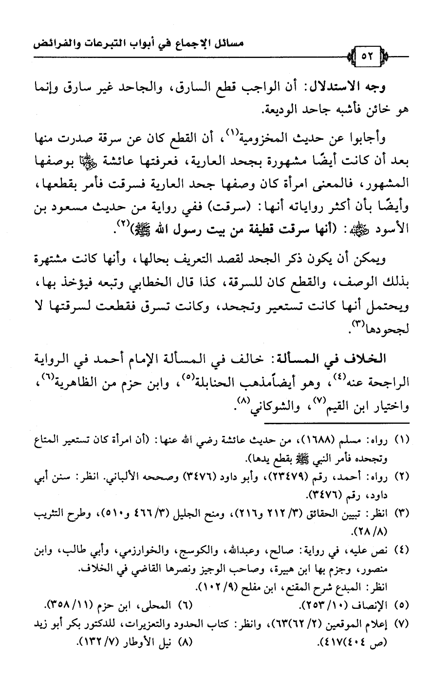 (¬1) رواه: مسلم (1688)، من حديث عائشة رضي اللَّه عنها: (أن امرأة كان تستعير المتاع وتجحده فأمر النبي -صلى اللَّه عليه وسلم- بقطع يدها).