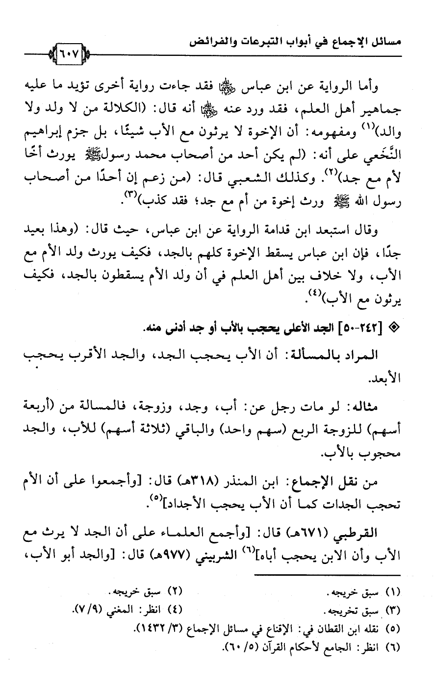 • من نقل الإجماع: ابن المنذر (318 هـ) قال: [وأجمعوا على أن الأم تحجب الجدات كما أن الأب يحجب الأجداد] (¬5).