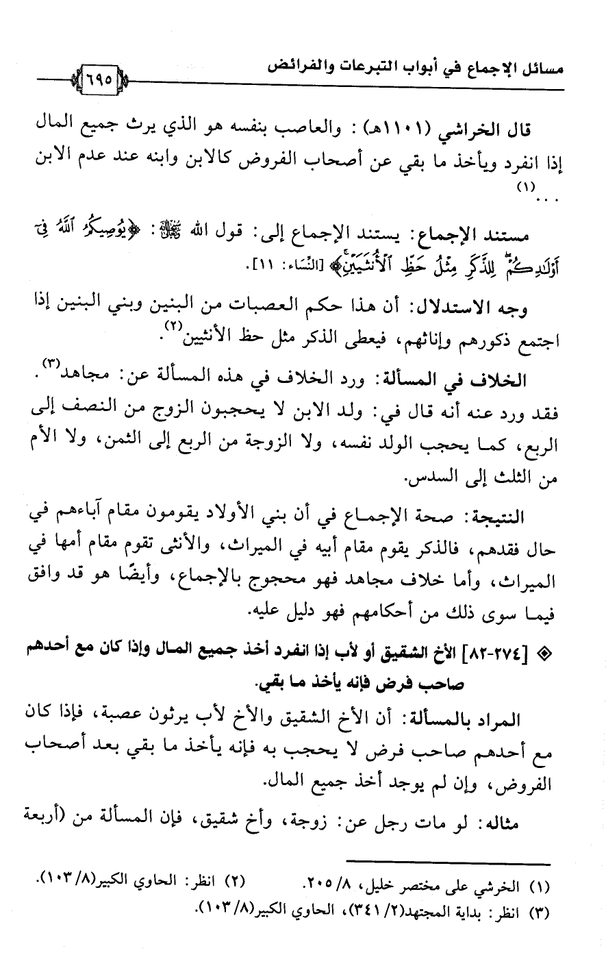 • مستند الإجماع: يستند الإجماع إلى: قول اللَّه سبحانه وتعالى: {يُوصِيكُمُ اللَّهُ فِي أَوْلَادِكُمْ لِلذَّكَرِ مِثْلُ حَظِّ الْأُنْثَيَيْنِ} [النساء: 11].