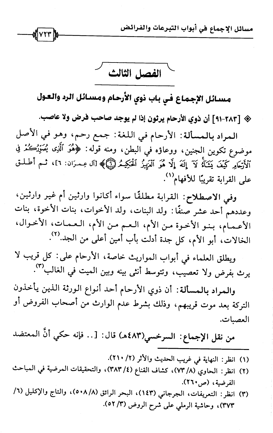 الفصل الثالث: مسائل الإجماع في باب ذوي الأرحام ومسائل الرد والعول