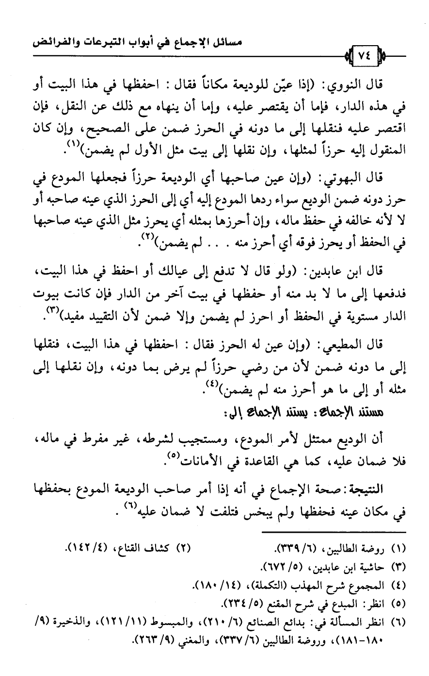 أن الوديع ممتثل لأمر المودع، ومستجيب لشرطه، غير مفرط في ماله، فلا ضمان عليه، كما هي القاعدة في الأمانات (¬5).Rصحة الإجماع في أنه إذا أمر صاحب الوديعة المودع بحفظها في مكان عينه فحفظها ولم يبخس فتلفت لا ضمان عليه (¬6).