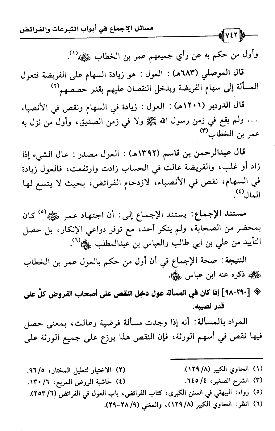 (¬5) رواه: البيهقي في السنن الكبرى, كتاب الفرائض، باب العول في الفرائض (6/ 253).
