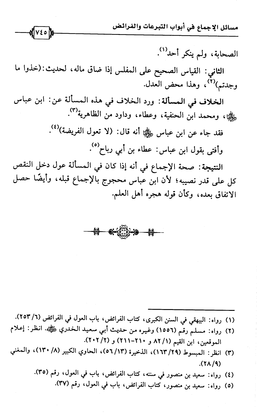 (¬5) رواه: سعيد بن منصور، كتاب الفرائض، باب في العول، رقم (37).