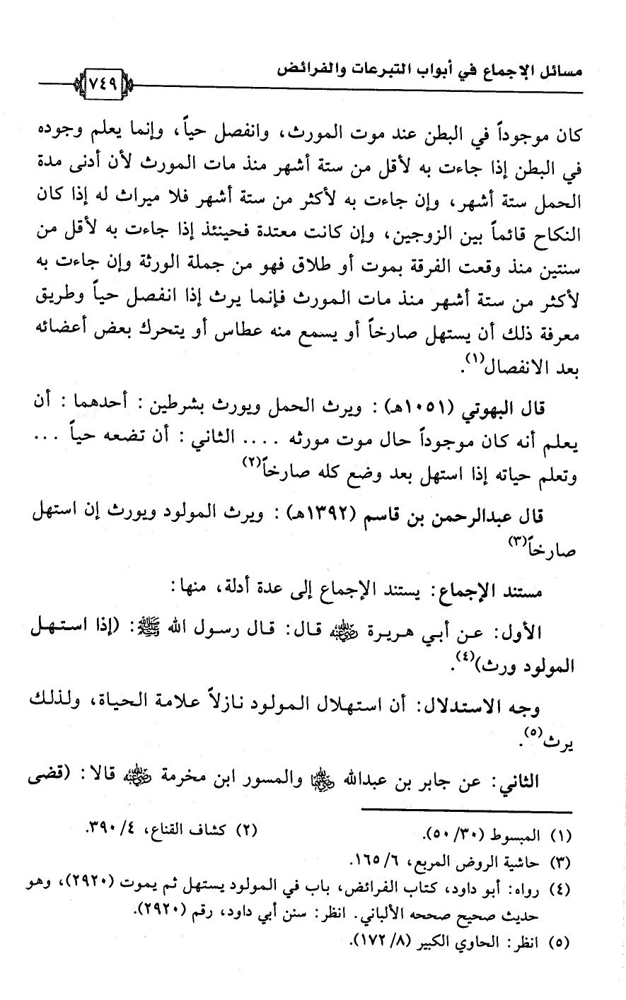 قال عبد الرحمن بن قاسم (1392 هـ): ويرث المولود ويورث إن استهل صارخًا (¬3).