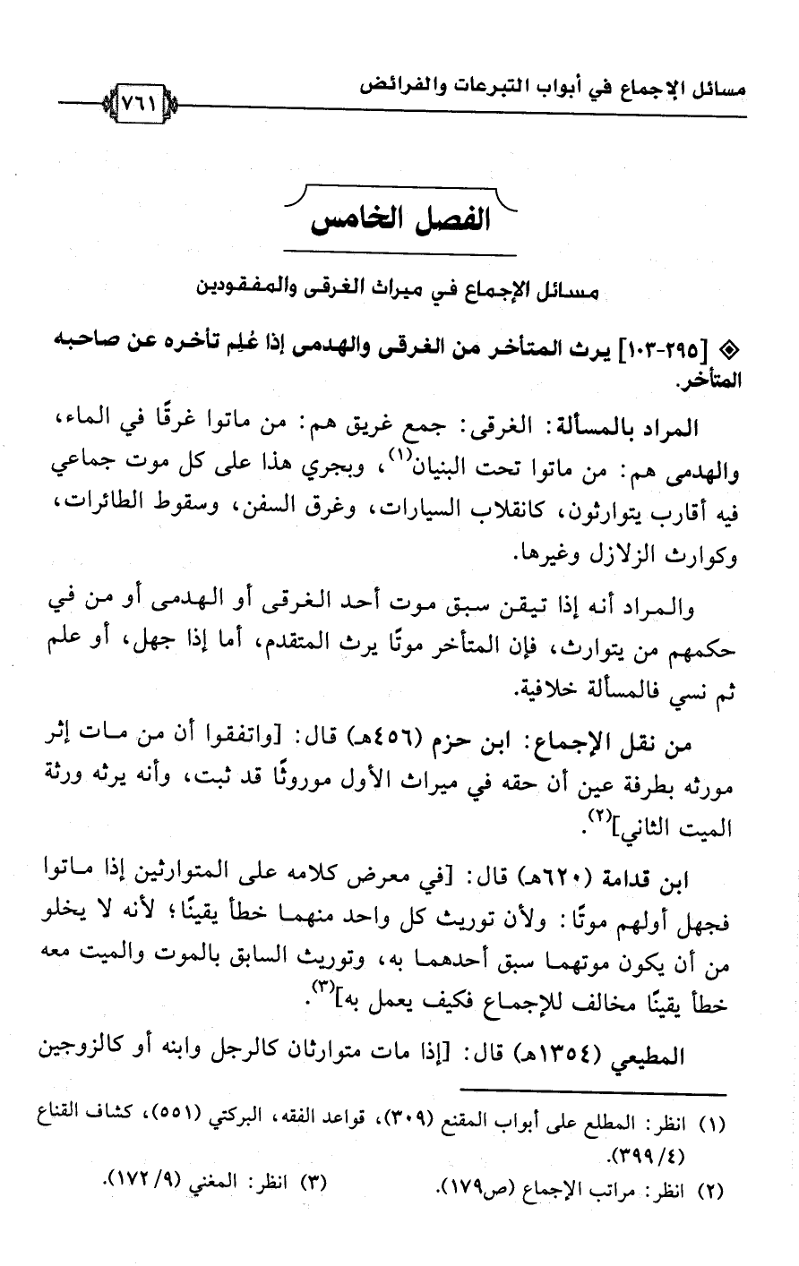 الفصل الخامس: مسائل الإجماع في ميراث الغرقى والمفقودين