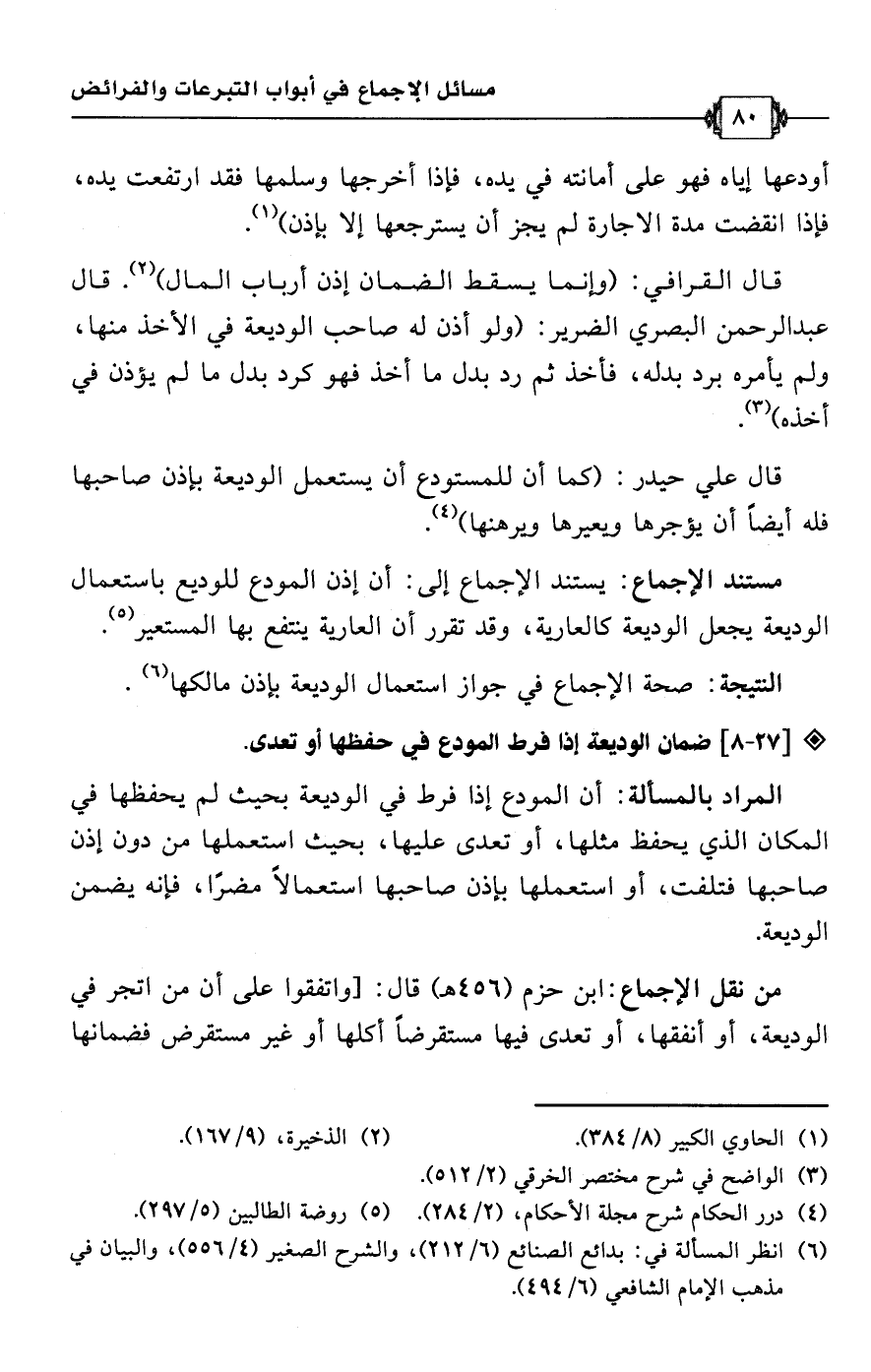 • من نقل الإجماع: ابن حزم (456 هـ) قال: [واتفقوا على أن من اتجر في الوديعة، أو أنفقها، أو تعدى فيها مستقرضًا أكلها أو غير مستقرض فضمانها