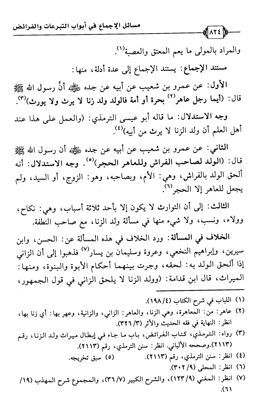 (¬7) انظر: المغني (9/ 123)، والشرح الكبير (7/ 36)، والمجموع شرح المهذب (19/ 61).