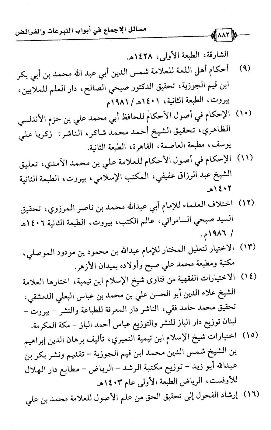 (12) اختلاف العلماء للإمام أبي عبد اللَّه محمد بن ناصر المرزوي، تحقيق السيد صبحي السامرائي، عالم الكتب، بيروت، الطبعة الثانية 1456 هـ/ 1986 م.