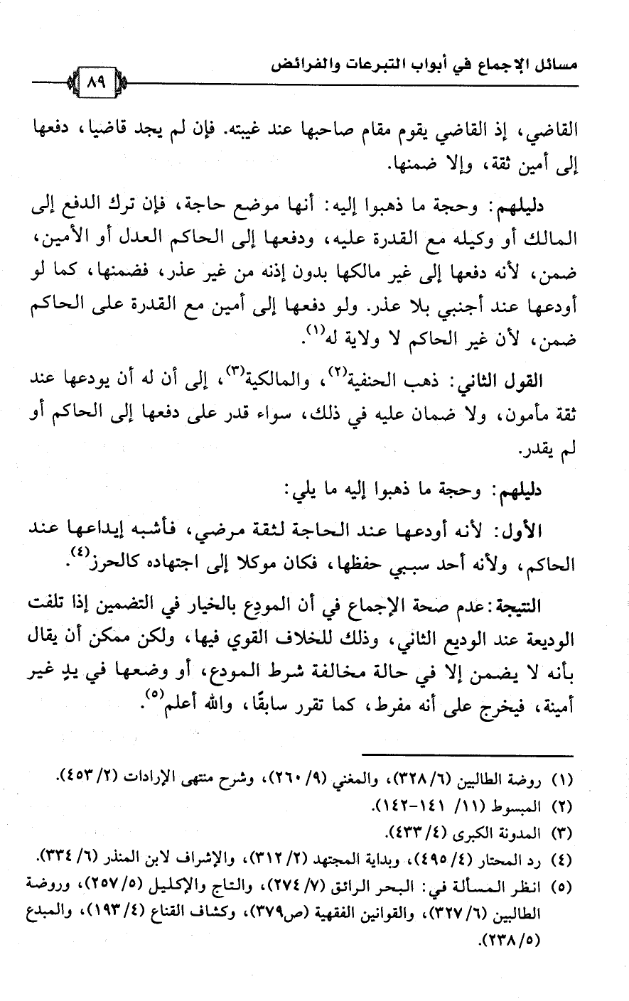 (¬5) انظر المسألة في: البحر الرائق (7/ 274)، والتاج والإكليل (5/ 257)، وروضة الطالبين (6/ 327)، والقوانين الفقهية (ص 379)، وكشاف القناع (4/ 193)، والمبدع (5/ 238).