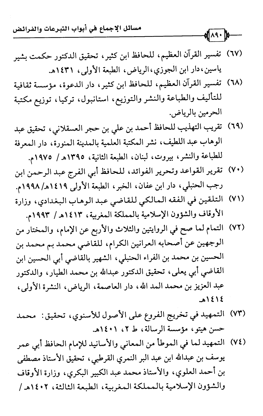 (67) تفسير القرآن العظيم، للحافظ ابن كثير، تحقيق الدكتور حكمت بشير ياسين، دار ابن الجوزي، الرياض، الطبعة الأولى، 1431 هـ.