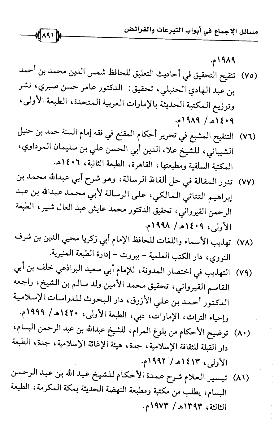 (76) التنقيح المشبع في تحرير أحكام المقنع في فقه إمام السنة حمد بن حنبل الشيباني، للشيخ علاء الدين أبي الحسن علي بن سليمان المرداوي، المكتبة السلفية ومطبعتها، القاهرة، الطبعة الثانية، 1406 هـ.