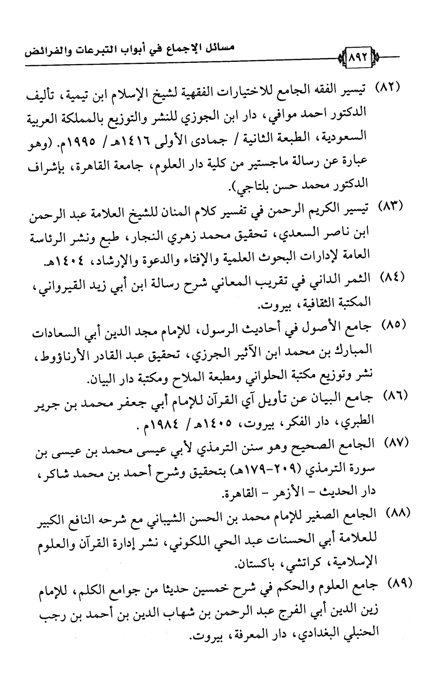 (83) تيسير الكريم الرحمن في تفسير كلام المنان للشيخ العلامة عبد الرحمن ابن ناصر السعدي، تحقيق محمد زهري النجار، طبع ونشر الرئاسة العامة لإدارات البحوث العلمية والإفتاء والدعوة والإرشاد، 1404 هـ.