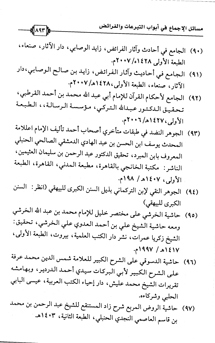 (91) الجامع في أحاديث وآثار الفرائض، زايد بن صالح الوصابي، دار الآثار، صنعاء، الطبعة الأولى، 1428 هـ/ 2007 م.