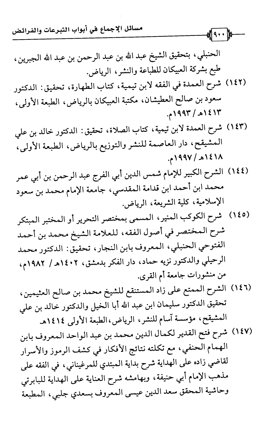 (144) الشرح الكبير للإمام شمس الدين أبي الفرج عبد الرحمن بن أبي عمر محمد ابن أحمد ابن قدامة المقدسي، جامعة الإمام محمد بن سعود الإسلامية، كلية الشريعة، الرياض.