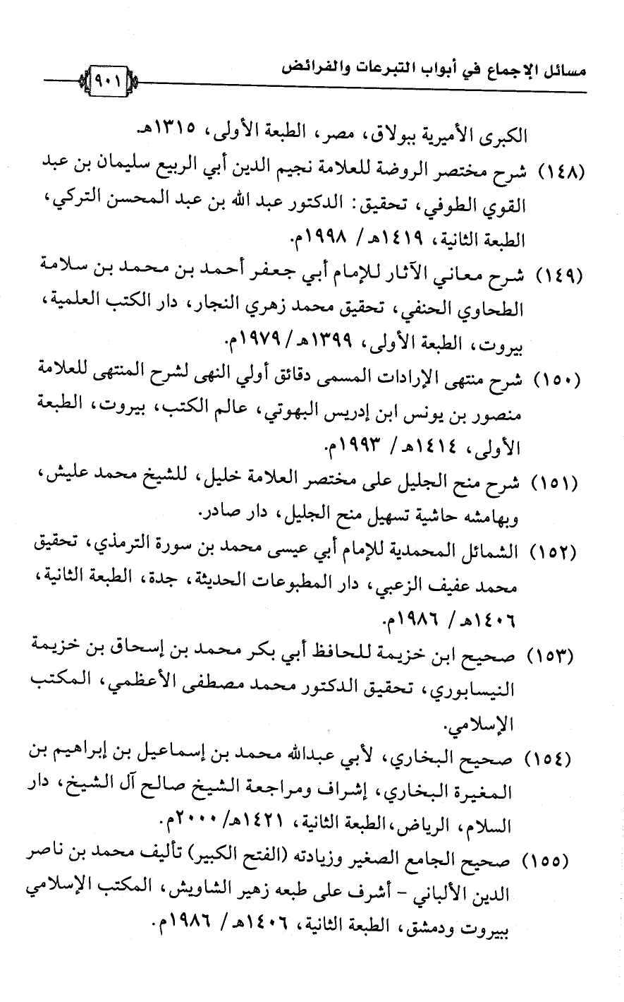 (150) شرح منتهى الإرادات المسمى دقائق أولي النهى لشرح المنتهى للعلامة منصور بن يونس ابن إدريس البهوتي، عالم الكتب، بيروت، الطبعة الأولى، 1414 هـ/ 1993 م.