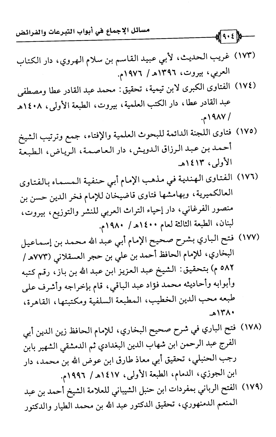 (178) فتح الباري في شرح صحيح البخاري، للإمام الحافظ زين الدين أبي الفرج عبد الرحمن ابن شهاب الدين البغدادي ثم الدمشقي الشهير بابن رجب الحنبلي، تحقيق أبي معاذ طارق ابن عوض اللَّه بن محمد، دار ابن الجوزي، الدمام، الطبعة الأولى، 1417 هـ/ 1996 م.