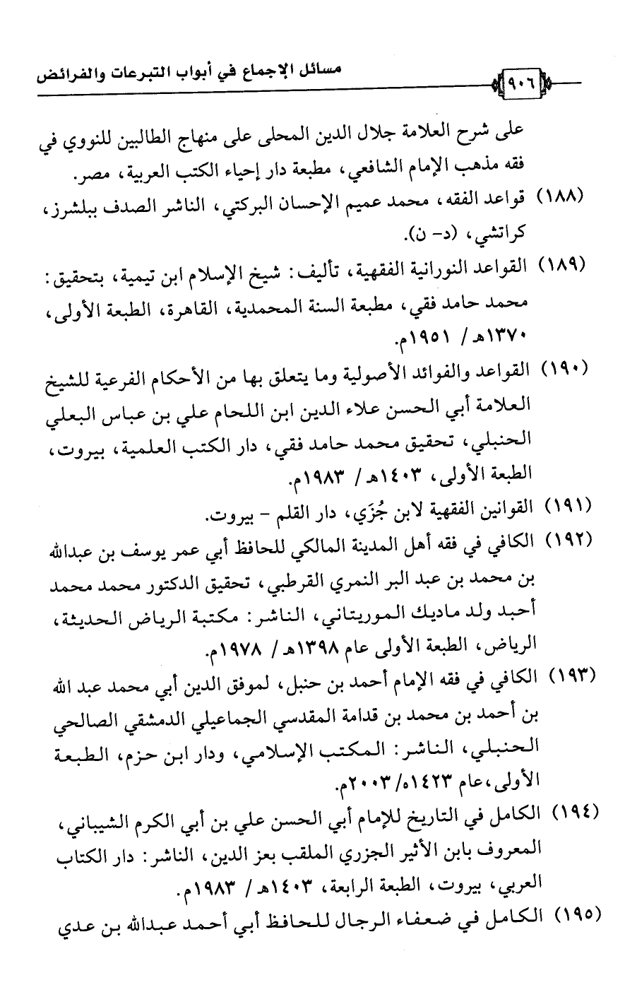 (190) القواعد والفوائد الأصولية وما يتعلق بها من الأحكام الفرعية للشيخ العلامة أبي الحسن علاء الدين ابن اللحام علي بن عباس البعلي الحنبلي، تحقيق محمد حامد فقي، دار الكتب العلمية، بيروت، الطبعة الأولى، 1403 هـ/ 1983 م.