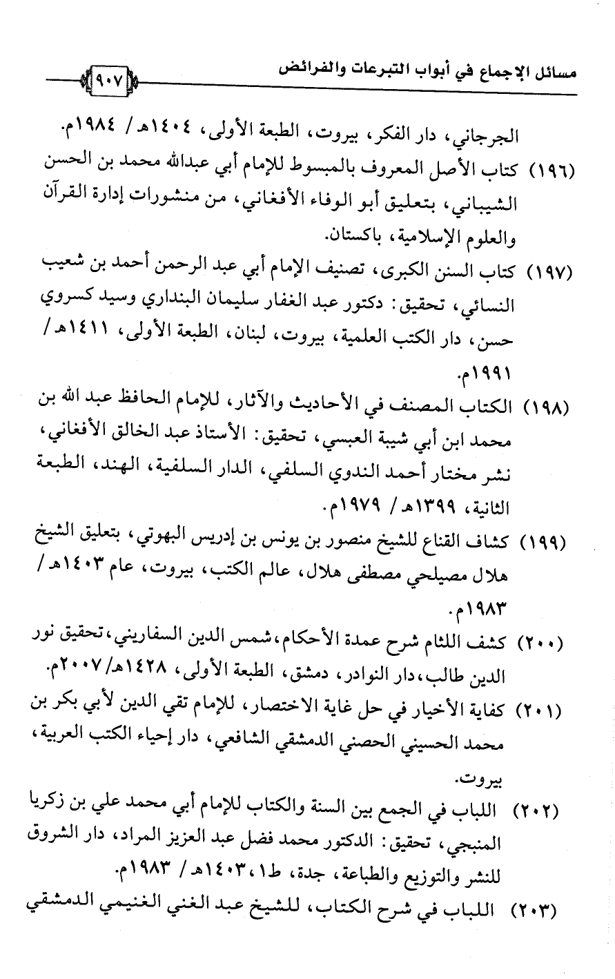 (200) كشف اللثام شرح عمدة الأحكام، شمس الدين السفاريني، تحقيق نور الدين طالب، دار النوادر، دمشق، الطبعة الأولى، 1428 هـ/ 2007 م.