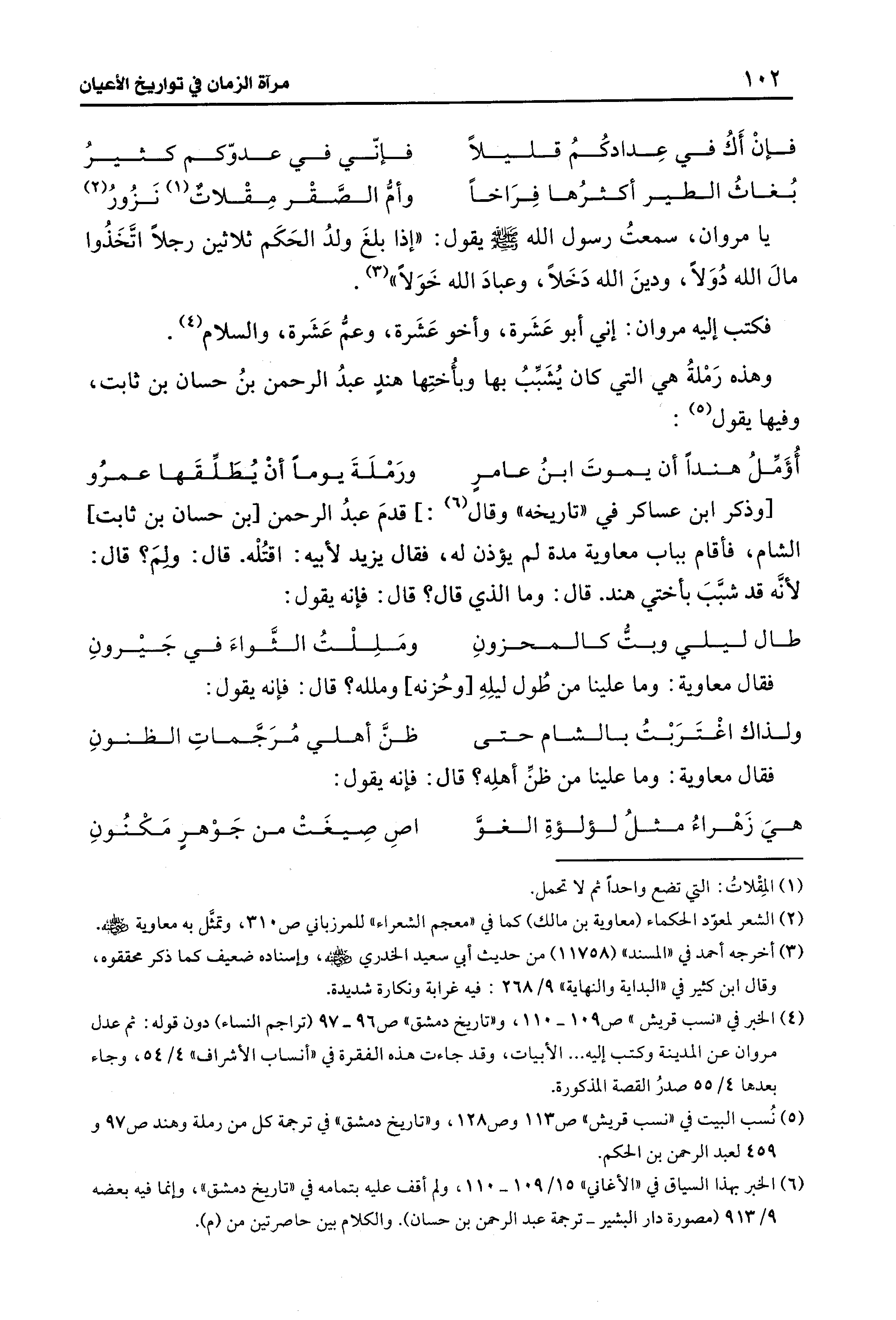 (¬5) نُسب البيت في "نسب قريش" ص 113 وص 128، و "تاريخ دمشق" في ترجمة كل من رملة وهند ص 97 و 459 لعبد الرحمن بن الحكم.